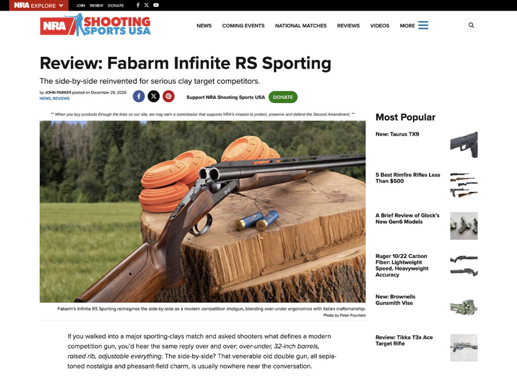 Read Full Article“The Infinite RS Sporting doesn’t simply revive the side-by-side for the modern competition landscape—it reimagines what the platform can be. Fabarm has fused engineering rigor, ergonomic sophistication and a bit of rebellious charm into a shotgun that stands completely alone in today’s market.”